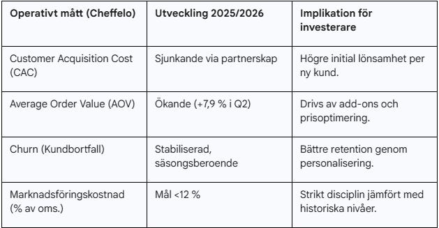 Cheffelos operativa exekvering under 2025 har präglats av mottot “lojalitet framför rabatter”. Under Q3 2025 ökade kundanskaffningen (acquisition) med 64 % jämfört med föregående år, vilket var det högsta inflödet sedan pandemin. Det som är unikt med denna tillväxt är hur den uppnåddes: genom partnerskap som det med SAS Eurobonus, där nya kunder belönas med poäng istället för de traditionella djupa prissänkningarna på de första boxarna.